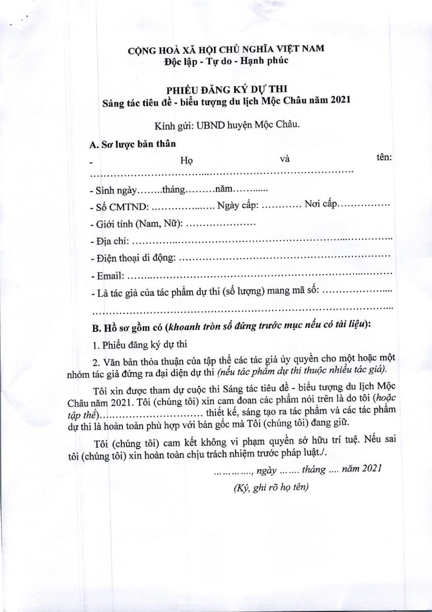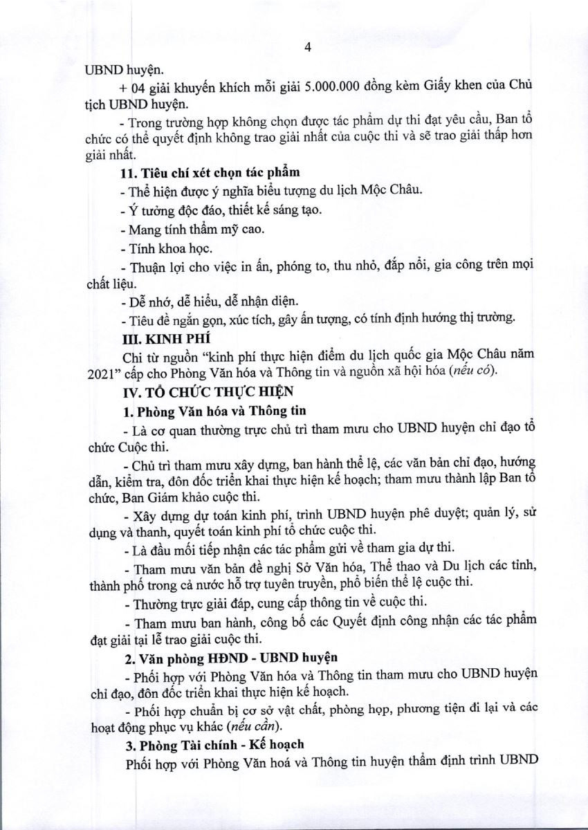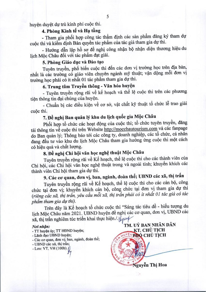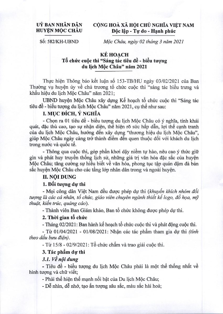 Kế hoạch Tổ chức cuộc thi “Sáng tác tiêu đề - biểu tượng du lịch Mộc Châu” năm 2021Thứ ba, ngày 31/08/2021 - 16:08 Đã xem: 1,778 views UBND huyện Mộc Châu xây dựng Kế hoạch tổ chức cuộc thi “Sáng tác tiêu đề - biểu tượng du lịch Mộc Châu” năm 2021, cụ thể như sau: Tập trung chuyển đổi số trong phát triển du lịch Sản phẩm của du lịch nông thôn