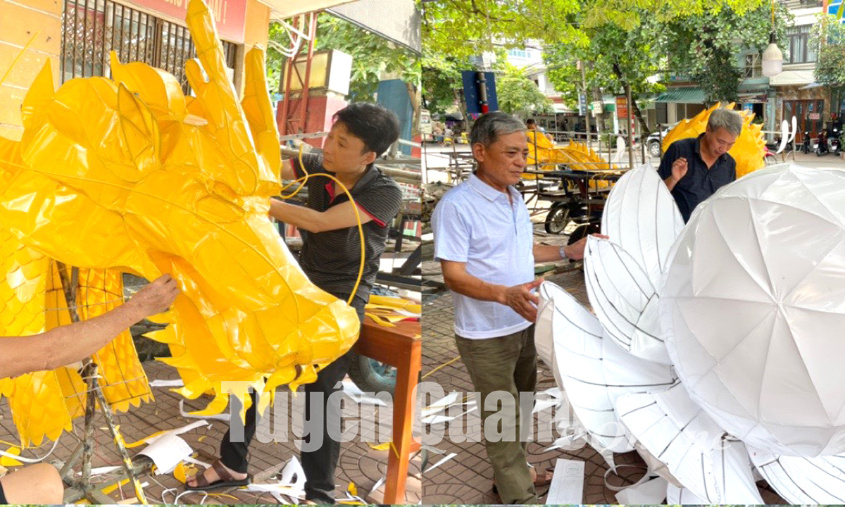 Những ngày này có hàng chục mô hình đèn lồng khổng lồ rực rỡ, diễu hành trên các con phố, mang đến nét văn hóa độc đáo trong việc đón Tết Trung thu ở Tuyên Quang, mỗi mô hình là một ý tưởng đầy sáng tạo, rất nhân văn. Điều đặc biệt là đằng sau những mô hình đó là cả một bài học sâu sắc về tình người, về ứng xử, về lòng yêu nước và cả về lịch sử hào hùng của dân tộc.