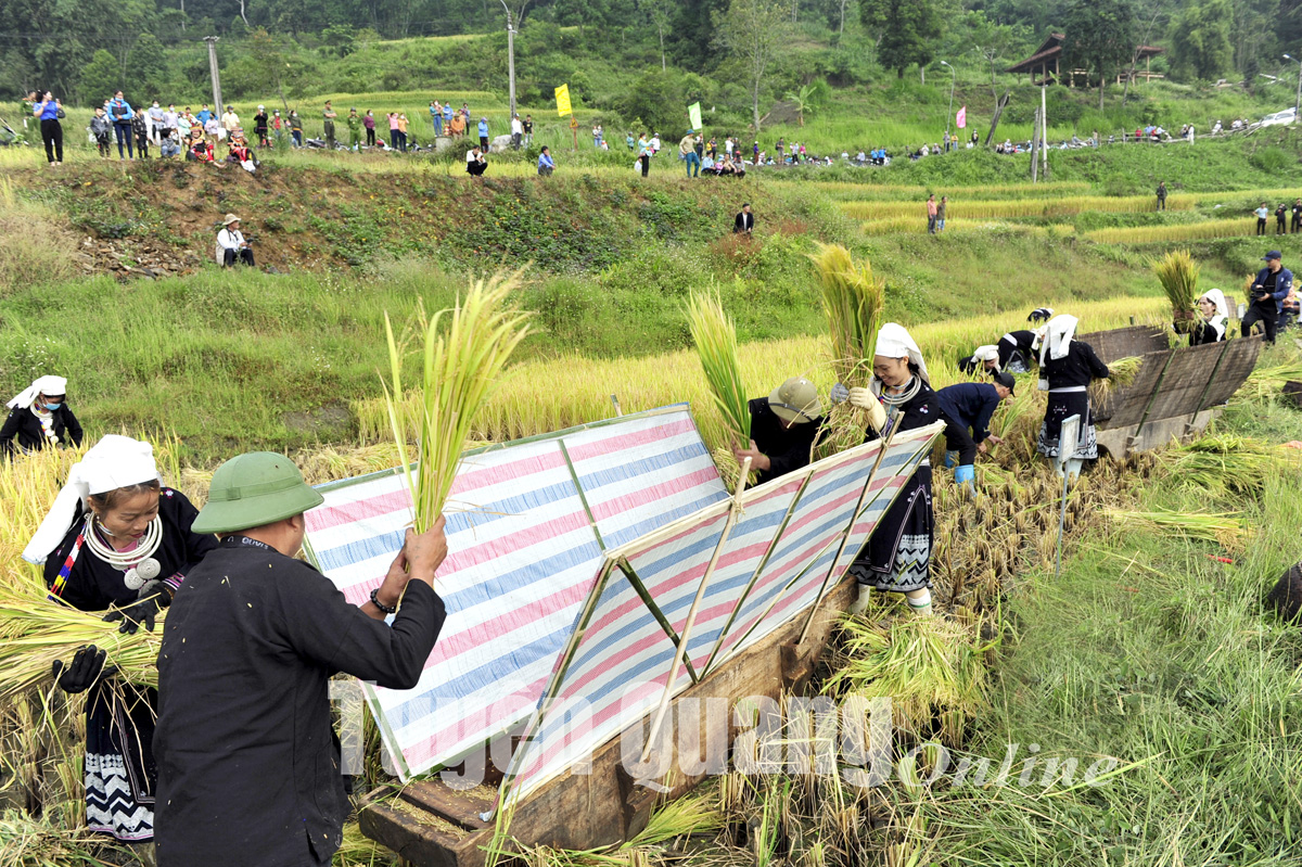 Thi thu hoạch lúa là một trong những hoạt động thu hút đông đảo người dân và du khách tham gia. Các đội thi phải hoàn thành phần việc từ cắt, đạp, thu gom lúa trên một phần diện tích.