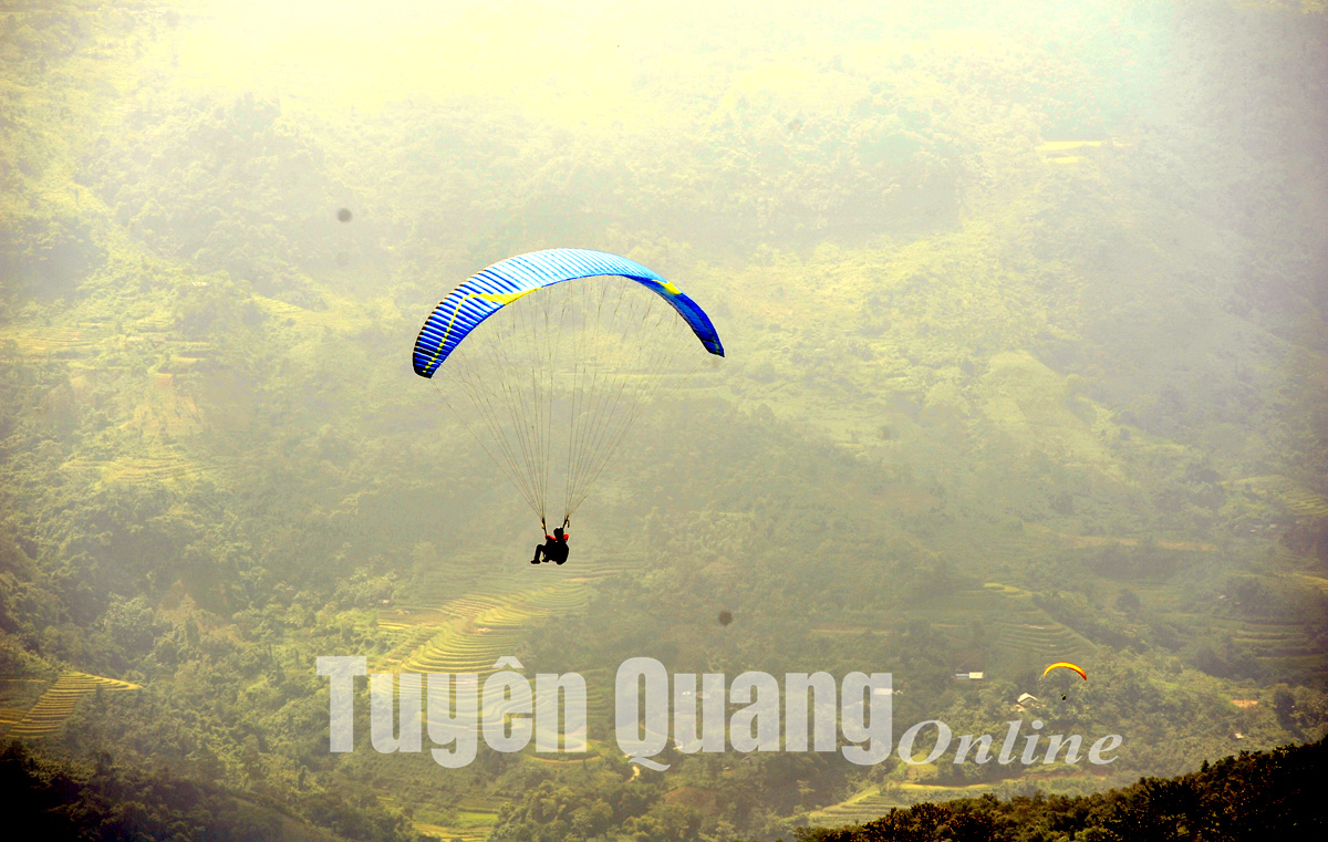 Dù lượn có điểm cất cánh tại Đồi Đòn thôn Khâu Tràng xã Hồng Thái, địa điểm hạ cánh thôn Bản Tâng, xã Đà Vị.