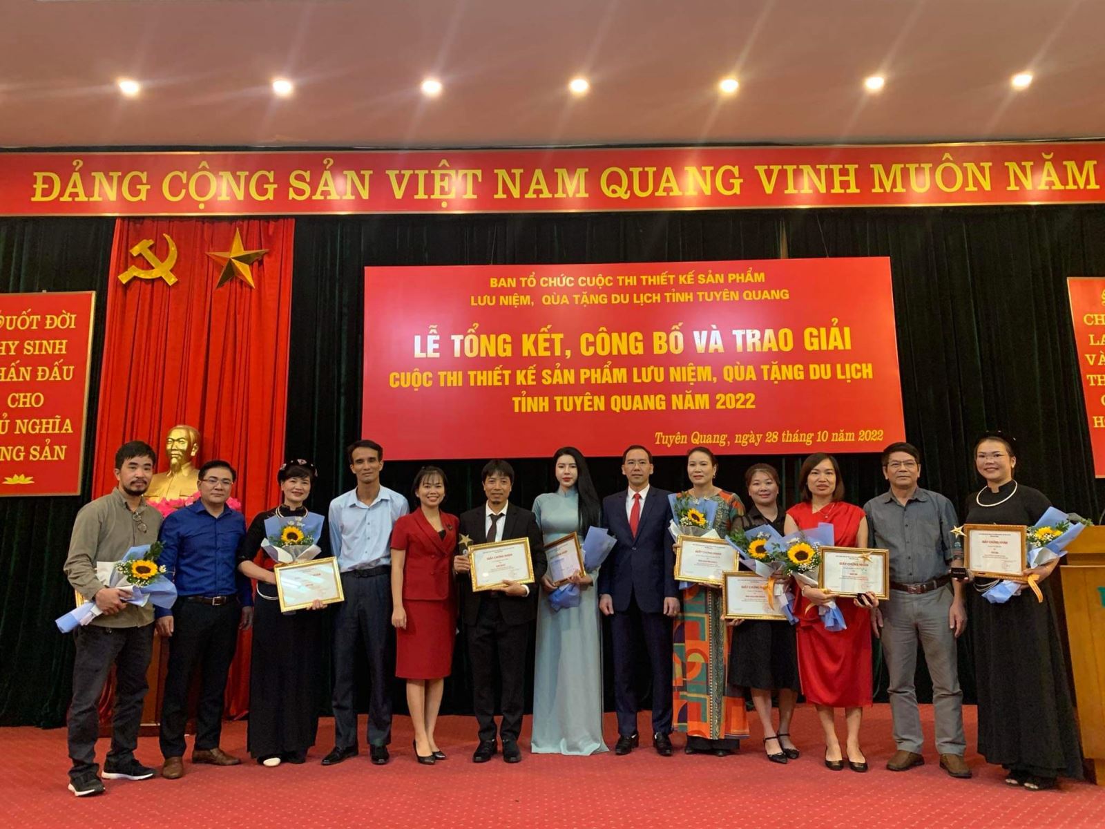Ban Tổ chức Cuộc thi đã lựa chọn và trao giải Nhất cho tác giả Nguyễn Xuân Trường (TP Tuyên Quang) với tác phẩm “Tượng đài Bác Hồ với nhân dân các dân tộc tỉnh Tuyên Quang” trên chất liệu Pha lê nguyên khối; 2 giải nhì được trao cho Hợp tác xã Thổ cẩm Lâm Bình (huyện Lâm Bình) với tác phẩm “Chăn thổ cẩm” và Tập đoàn HH - Đá quý Dragon (Hà Nội) với tác phẩm “Tháp Dragon hình ảnh du lịch Tuyên Quang”; 3 giải ba được tao cho Hiệp hội doanh nghiệp tỉnh với bộ quà tặng sản phẩm OCOP Tuyên Quang; tác giả Nguyễn Thị Thanh Dung (Hà Nội) với tác phẩm "Lọ hoa thư pháp Việt trên Gốm" và HTX Nhật Minh (Lâm Bình) với bộ sản phẩm tra: Bút tre, bình tre in logo, slogan du lịch Tuyên Quang và 10 giải khuyến khích cho tác giả: Bàn Văn Nam (Chiêm Hóa) với tác phẩm tranh thêu tay: Nét đẹp danh lam thắng cảnh thác Bản Ba; tác giả Nguyễn Tấn Phát (Hà Nội) với bô trang sức tre sơn mài Tuyên Quang; Tác giả Nguyễn Thanh Mai (TP Tuyên Quang) với sản phẩm Ví thêu tay thổ cẩm có các hoa văn của người dân tộc; HTX Bảo Nguyên (Yên Sơn) với tác phẩm Tranh lá cây; tác giả Vương Diệu Thúy (Hàm Yên) với bộ sản phẩm quạt giấy, quạt nhựa, móc chìa khóa in logo, slogan du lịch Tuyên Quang; HTX chăn nuôi ong Phong Thổ (TP Tuyên Quang) với hộp quà tặng mật ong; tác giả Ma Thị Chuyên (Chiêm Hóa) với bộ nón cật tre thu nhỏ vẽ logo, slogan du lịch Tuyên Quang; Công ty TNHH Thảo dược Tuệ Tâm (TP Tuyên Quang) với bộ sản phẩm quà tặng thảo dược xanh Tuệ Tâm; Tác giả Lê Hồng Mai (Hà Nội) với bộ túi làm từ lục bình và cỏ bàng; Tác giả Kim Văn Long (Vĩnh Phúc) với bức tranh gỗ tròn Cây Đa.