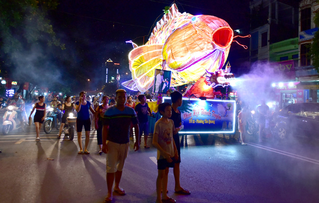 Mô hình đèn Trung thu của các khu dân cư diễn diễu trên đường phố.