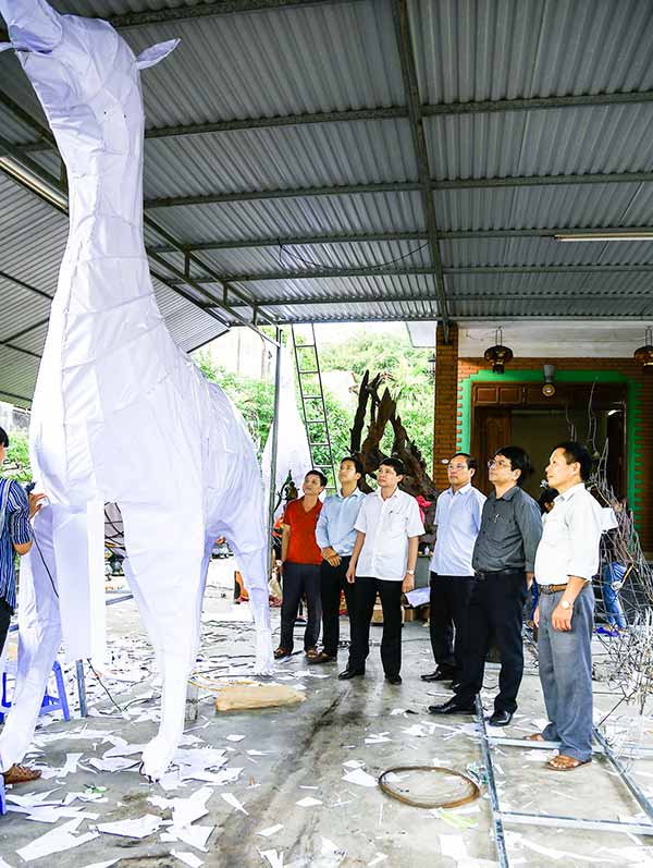 Đại diện Sở Văn hóa, Thể thao và Du lịch cùng các lạnh đạo một số đợ vị khảo sát mô hình Trung thu