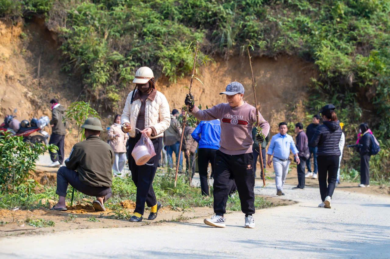 Trong khuôn khổ chương trình, Ban tổ chức đã trao tặng 100 cây hoa đào cho nhân dân xã Du Già, tạo điểm nhấn cảnh quan tại các tuyến đường du lịch, khu dân cư và điểm check-in. Ngay sau lễ phát động, các đại biểu và người dân đã tham gia trồng cây, treo biển hưởng ứng “Tết trồng cây năm 2026” và thu gom rác thải dọc tuyến đường từ thôn Cốc Pảng đến thôn Thâm Luông.