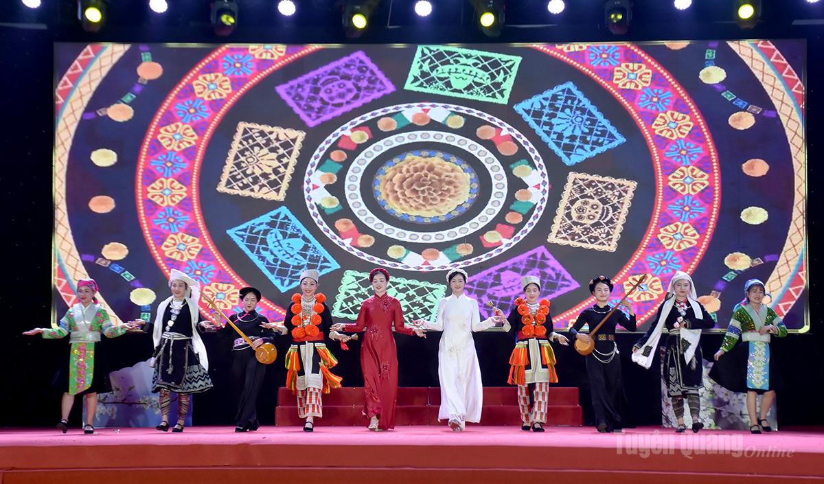 Tiết mục trình diễn các trang phục truyền thống của các dân tộc trên địa bàn xã Hồng Thái.