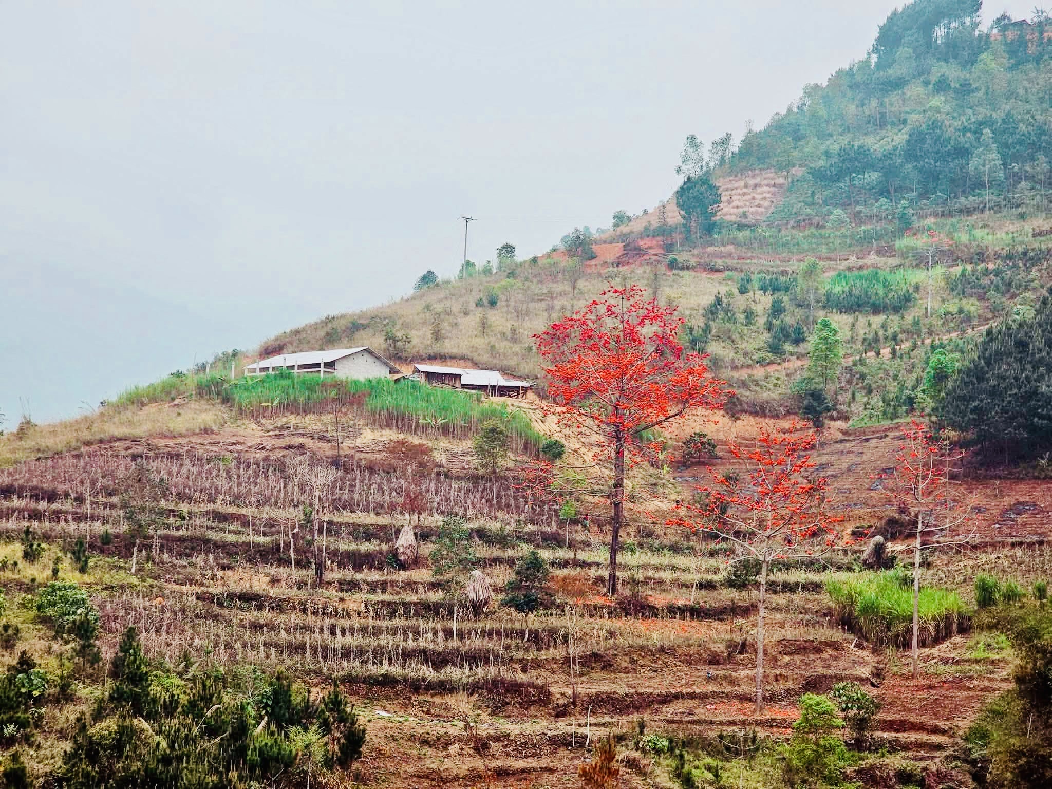 Hoa mộc miên nở rộ, nhuộm đỏ những triền núi.
