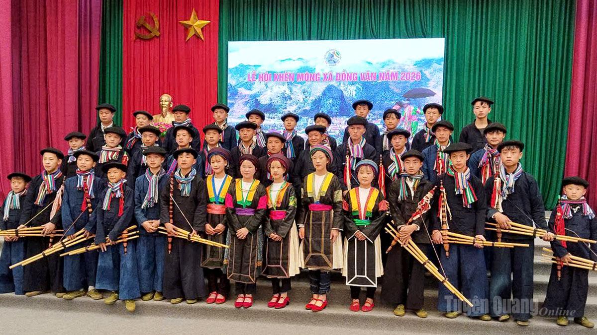 Các nghệ nhân, diễn viên quần chúng tích cực tham gia Lễ hội Khèn Mông xã Đồng Văn