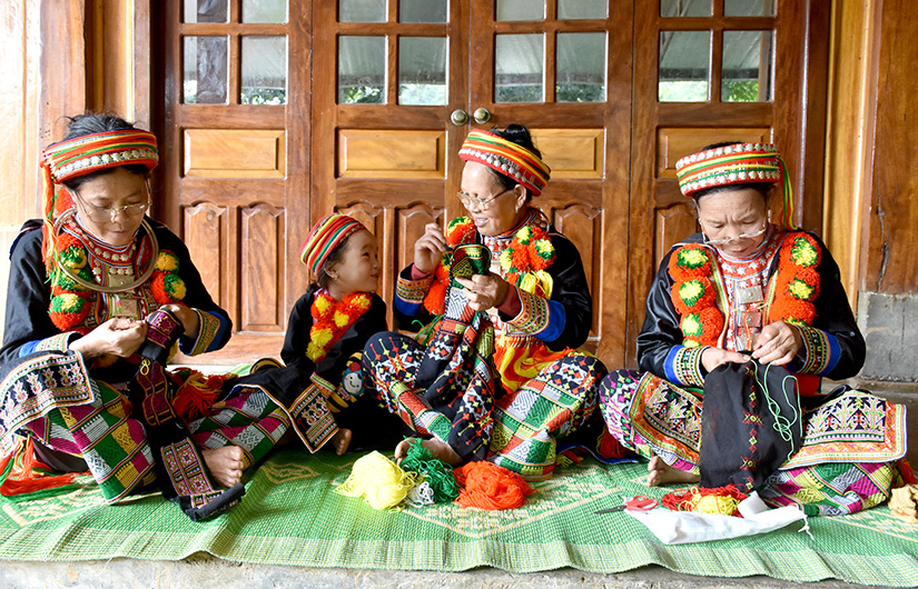 Người dân thôn Phú Lâm, xã Bình Phú (Chiêm Hóa) giữ gìn nghề thêu truyền thống của dân tộc mình.