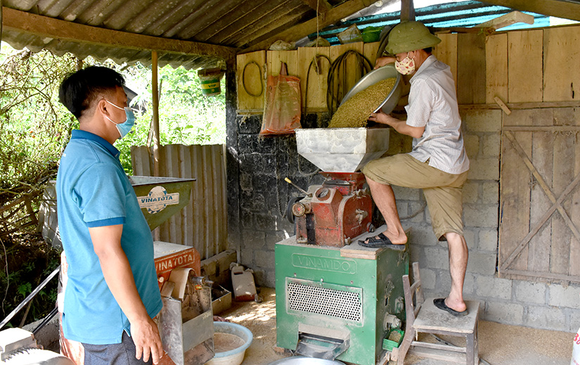 Anh Triệu Văn Lai, thôn Phú Lâm, xã Bình Phú (Chiêm Hóa) đầu tư máy xay xát phục vụ nhu cầu của người dân khi có điện.