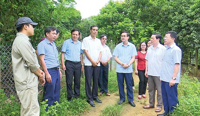 Đoàn công tác của Ủy ban MTTQ tỉnh Phú Thọ khảo sát tại huyện Phù Ninh để phản biện về thực trạng và giải pháp phát triển kinh tế trang trại giai đoạn 2021-2025. Ảnh: Đức Thắng.