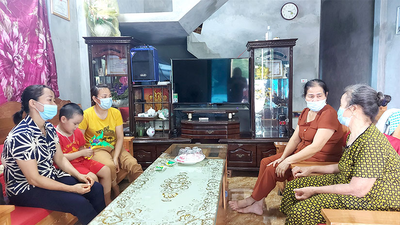 Đồng chí Trưởng thôn và Trưởng ban công tác Mặt trận thôn Hòa Đa, xã Phúc Thịnh thăm hỏi, nắm bắt tâm tư, nguyện vọng các hộ dân quá trình thực hiện giải phóng mặt bằng.