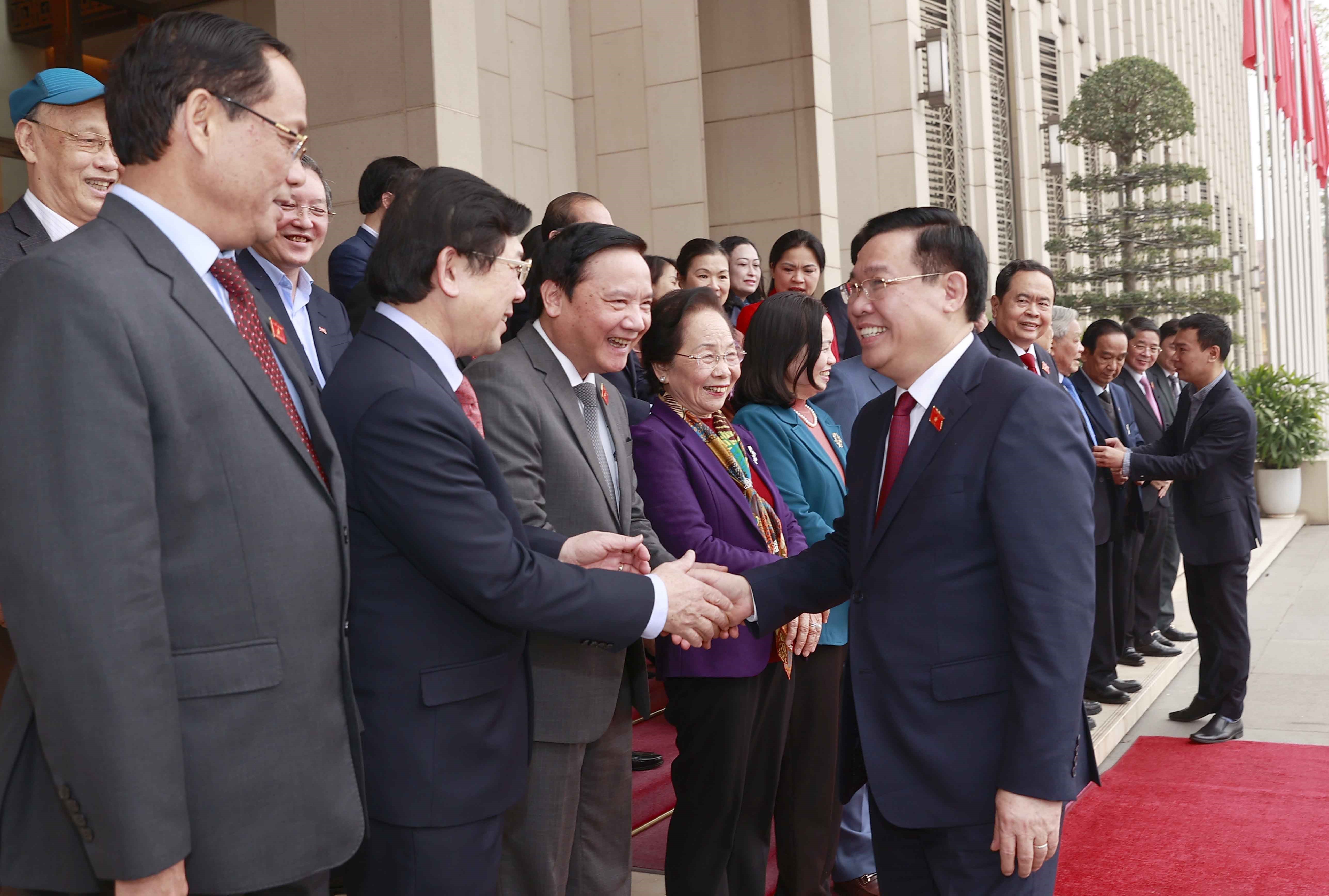 Ủy viên Bộ Chính trị, Chủ tịch Quốc hội Vương Đình Huệ và các đại biểu dự Hội nghị tổng kết công tác phối hợp giữa Uỷ ban Thường vụ Quốc hội và Đoàn Chủ tịch Uỷ ban Trung ương Mặt trận Tổ quốc Việt Nam_Ảnh: TTXVN