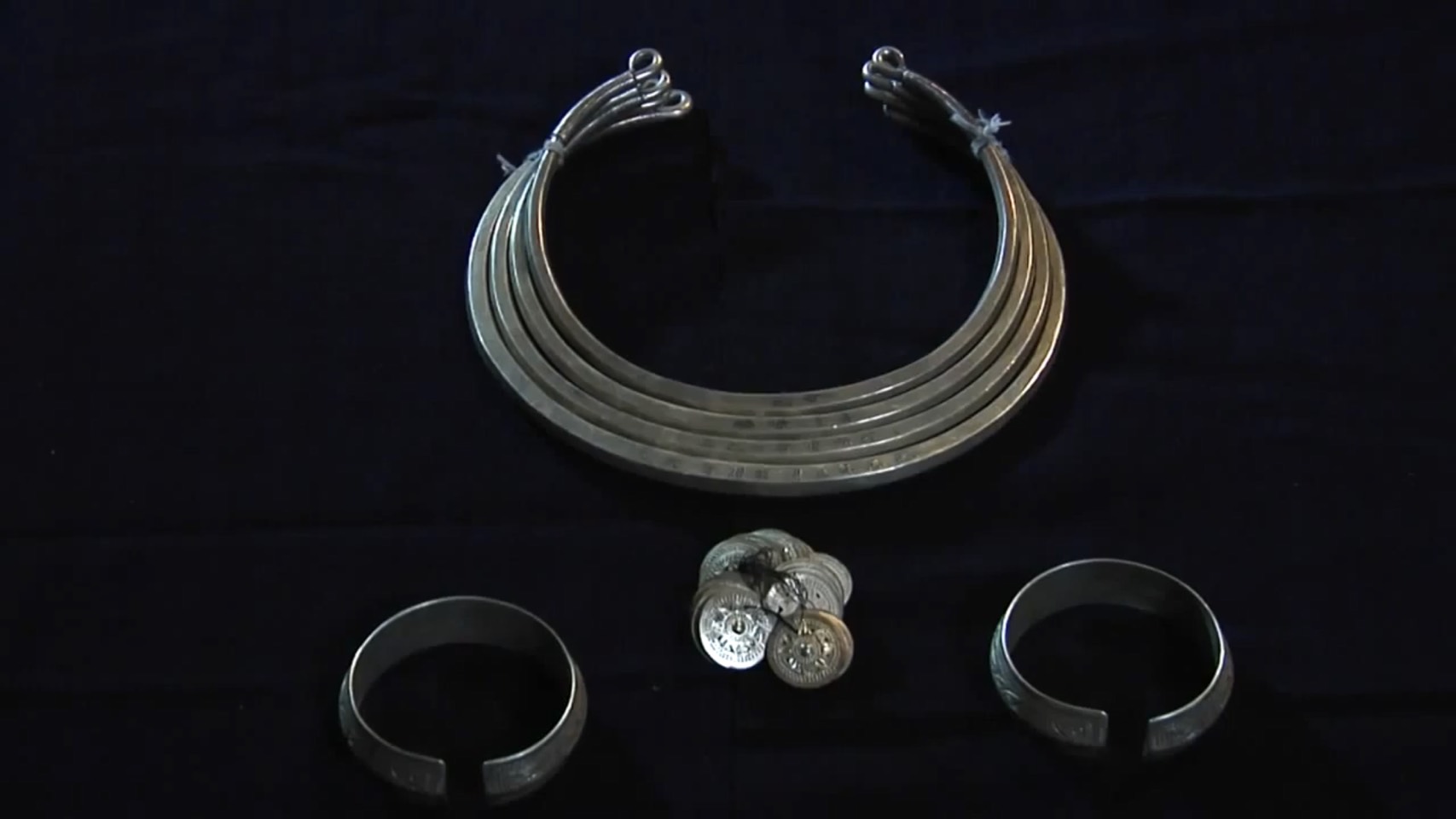 Đi kèm với trang phục là khăn đội đầu và dây xà tích bằng bạc, trên dây xà tích có treo nhiều vật dụng được làm bằng bạc rất tinh xảo như; hộp đựng vôi để ăn trầu, hình con cá lớn, cá nhỏ (tượng trưng cho cuộc sống sung túc), những quả chuông bằng bạc…gia đình giàu có thì dây xà tích lớn hơn và nhiều vật dụng hơn.