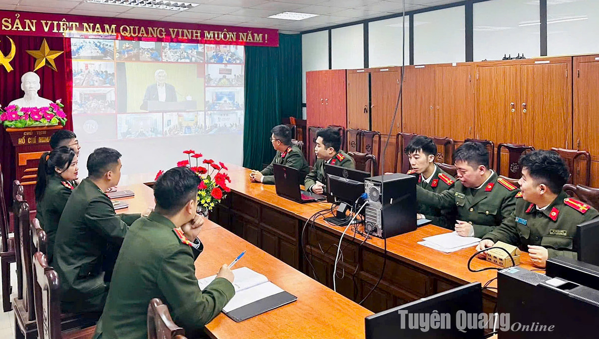 Đoàn viên, thanh niên Công an tỉnh Tuyên Quang học tập, quán triệt Nghị quyết số 57 do Trung ương Đoàn tổ chức thông qua hội nghị trực tuyến.