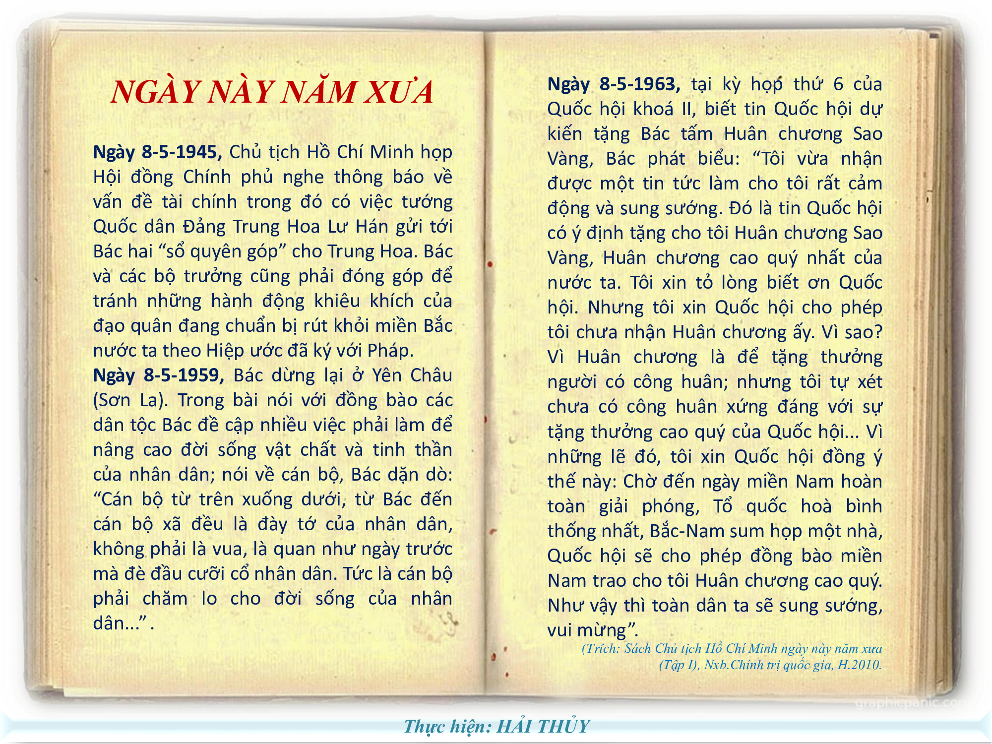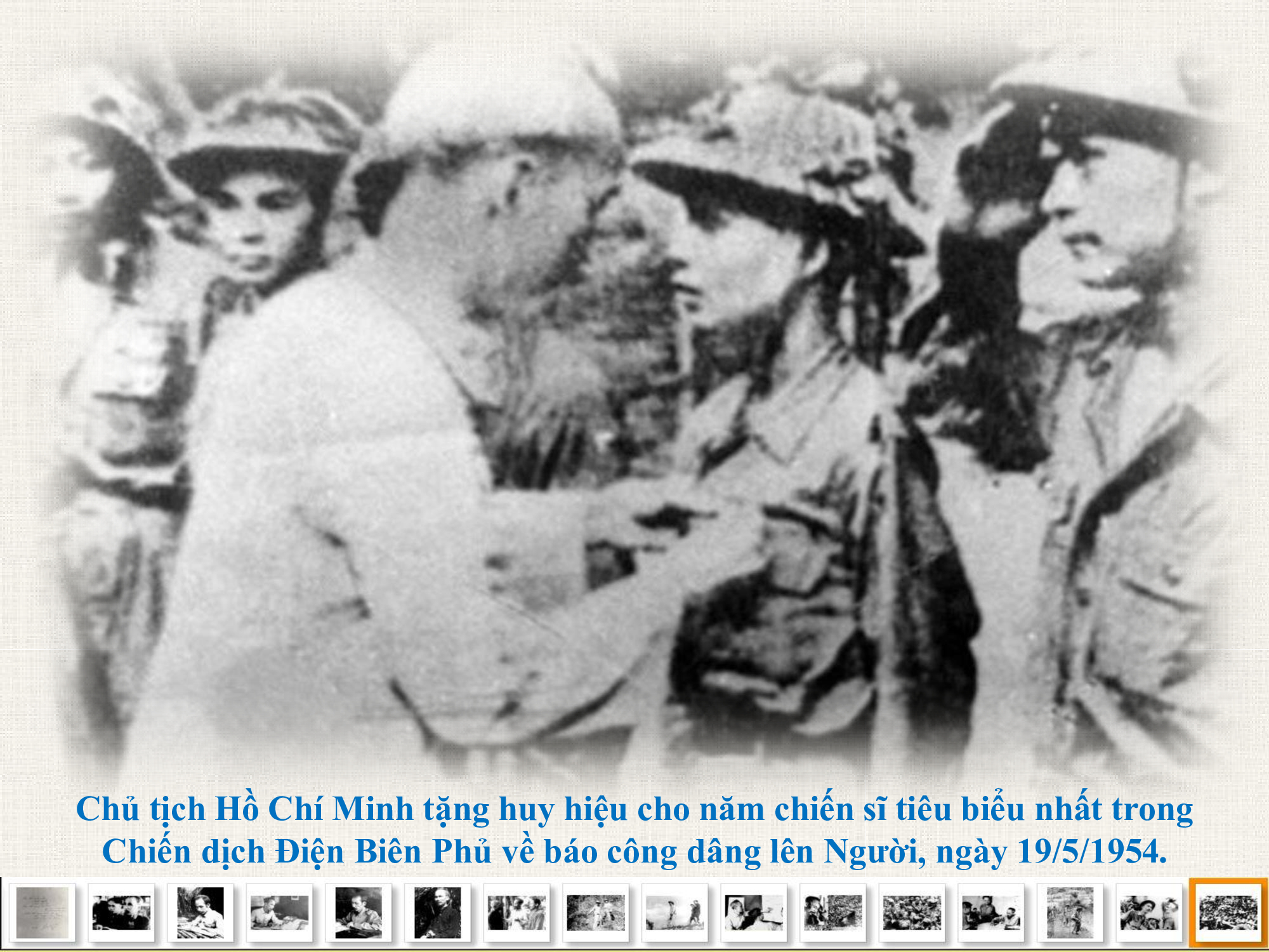 Ngày 8/5/1954, nhận được tin chiến dịch Điện Biên Phủ đã toàn thắng, Chủ tịch Hồ Chí Minh gửi “Thư khen ngợi bộ đội, dân công, thanh niên xung phong và đồng bào Tây Bắc đã chiến thắng vẻ vang ở Điện Biên Phủ” (đăng trên Báo Nhân dân, số 187, từ ngày 22 đến ngày 24/5/1954).