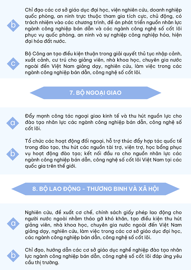 Ngày 04/12/2024, Thủ tướng Chính phủ ban hành Chỉ thị 43/CT-TTg đẩy mạnh đào tạo nhân lực cho ngành công nghiệp bán dẫn và một số ngành công nghệ số cốt lõi với một số nhiệm vụ như sau: