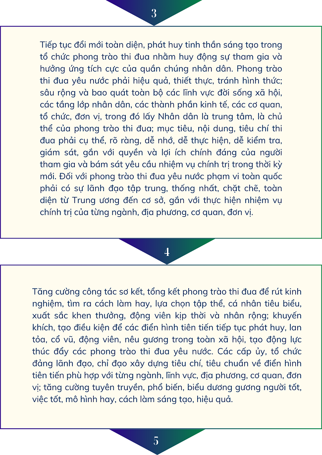 Ngày 26/12/2024, Bộ Chính trị ban hành Chỉ thị số 41-CT/TW về tăng cường sự lãnh đạo của Đảng công tác thi đua, khen thưởng trong tình hình mới, với một số nhiệm vụ và giải pháp sau: