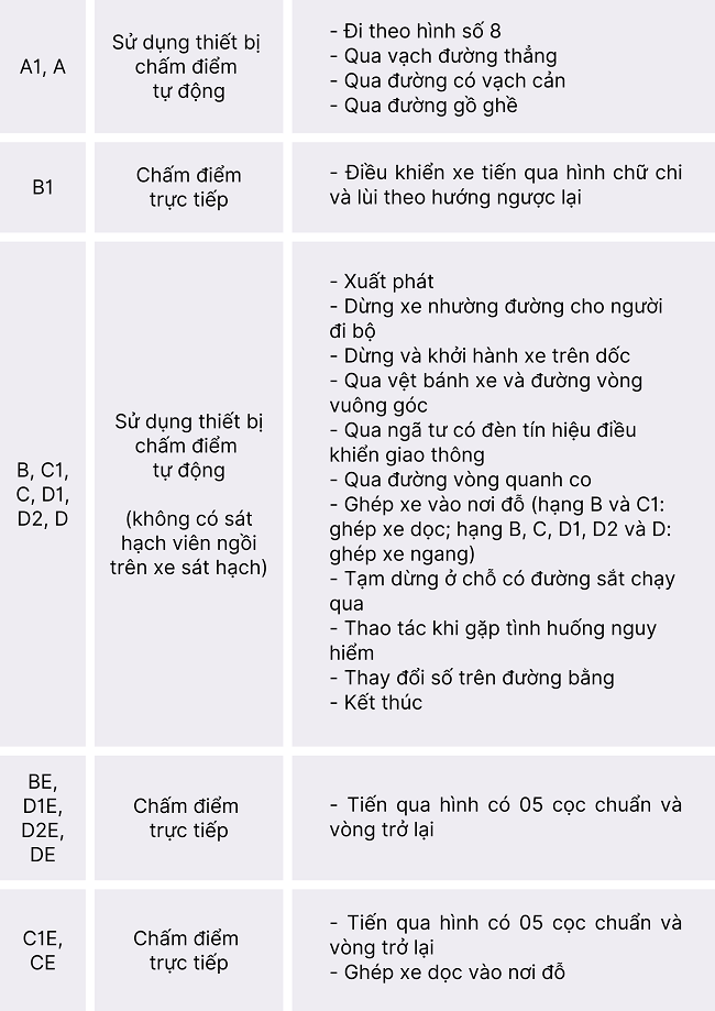 Ngày 15/11/2024, Bộ Giao thông vận tải ban hành Thông tư 35/2024/TT-BGTVT quy định về đào tạo, sát hạch, cấp giấy phép lái xe; cấp, sử dụng giấy phép lái xe quốc tế; đào tạo, kiểm tra, cấp chứng chỉ bồi dưỡng kiến thức pháp luật về giao thông đường bộ, với một số quy định về sát hạch lái xe tại điều 17 như sau: