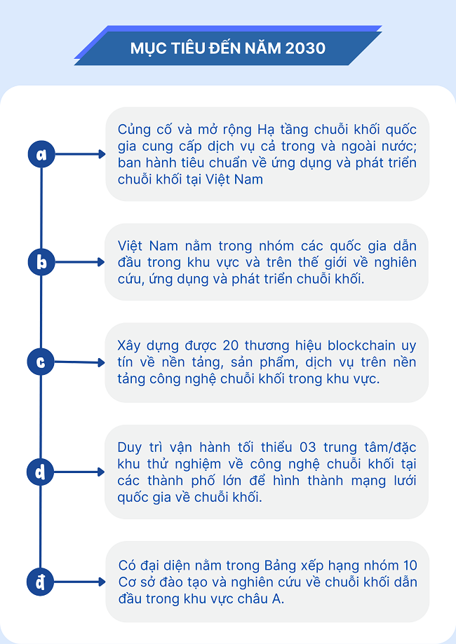 Ngày 22/10/2024, Chính phủ ban hành Quyết định số 1236/QĐ-TTg về Chiến lược quốc gia về ứng dụng và phát triển công nghệ chuỗi khối (blockchain) đến 2025, định hướng đến 2030 với mục tiêu, một số nhiệm vụ, giải pháp như sau: