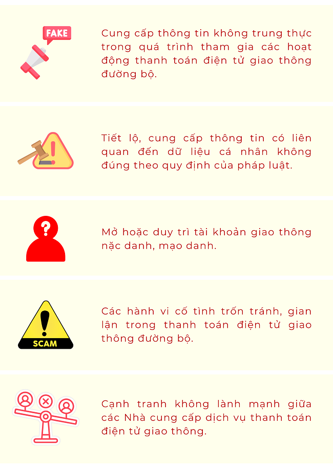 Những hành vi không được thực hiện trong hoạt động thanh toán điện tử giao thông đường bộ