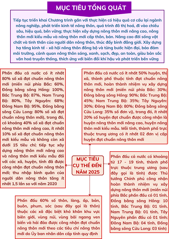 Ngày 22/2/2022, Thủ tướng Chính phủ ban hành Quyết định số 263/QĐ-TTg về phê duyệt Chương trình mục tiêu quốc gia xây dựng nông thôn mới giai đoạn 2021 - 2025 với phạm vi, đối tượng, mục tiêu như sau:
