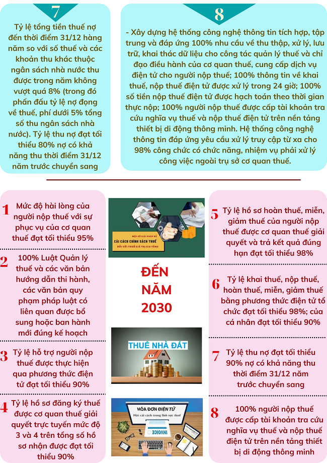 Ngày 23/4/2022, Thủ tướng Chính phủ ban hành Quyết định số 508/QĐ-TTg về phê duyệt Chiến lược cải cách hệ thống thuế đến năm 2030 với quan điểm, mục tiêu như sau: