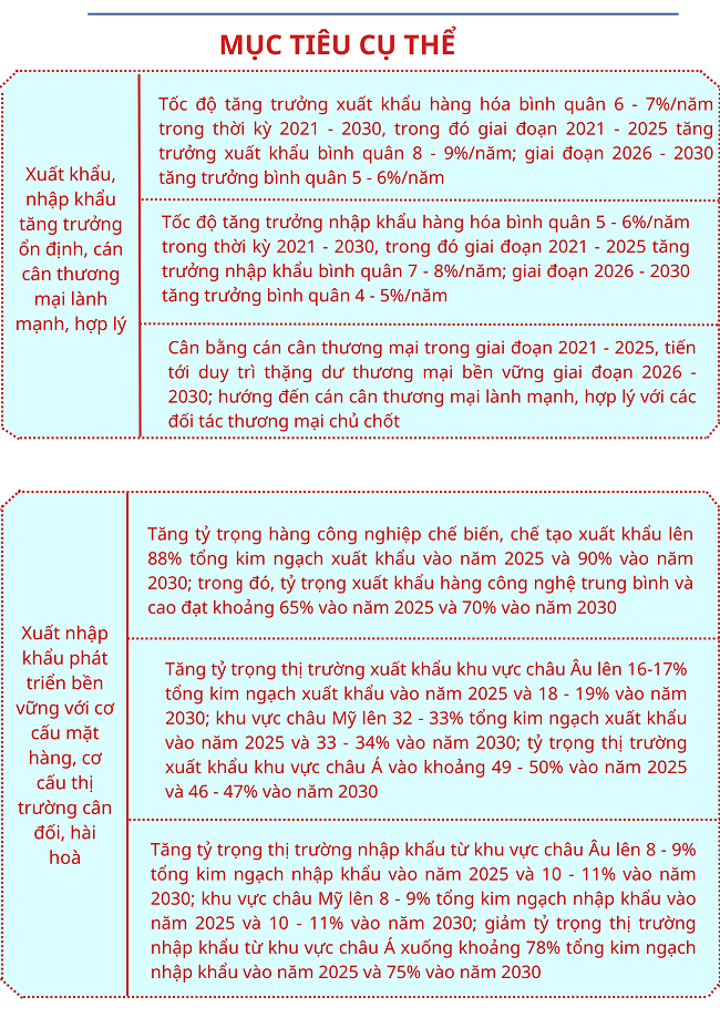 Ngày 19/4/2022, Thủ tướng Chính phủ ban hành Quyết định số 493/QĐ-TTg về phê Chiến lược xuất nhập khẩu hàng hóa đến năm 2030 với quan điểm, mục tiêu và giải pháp như sau: