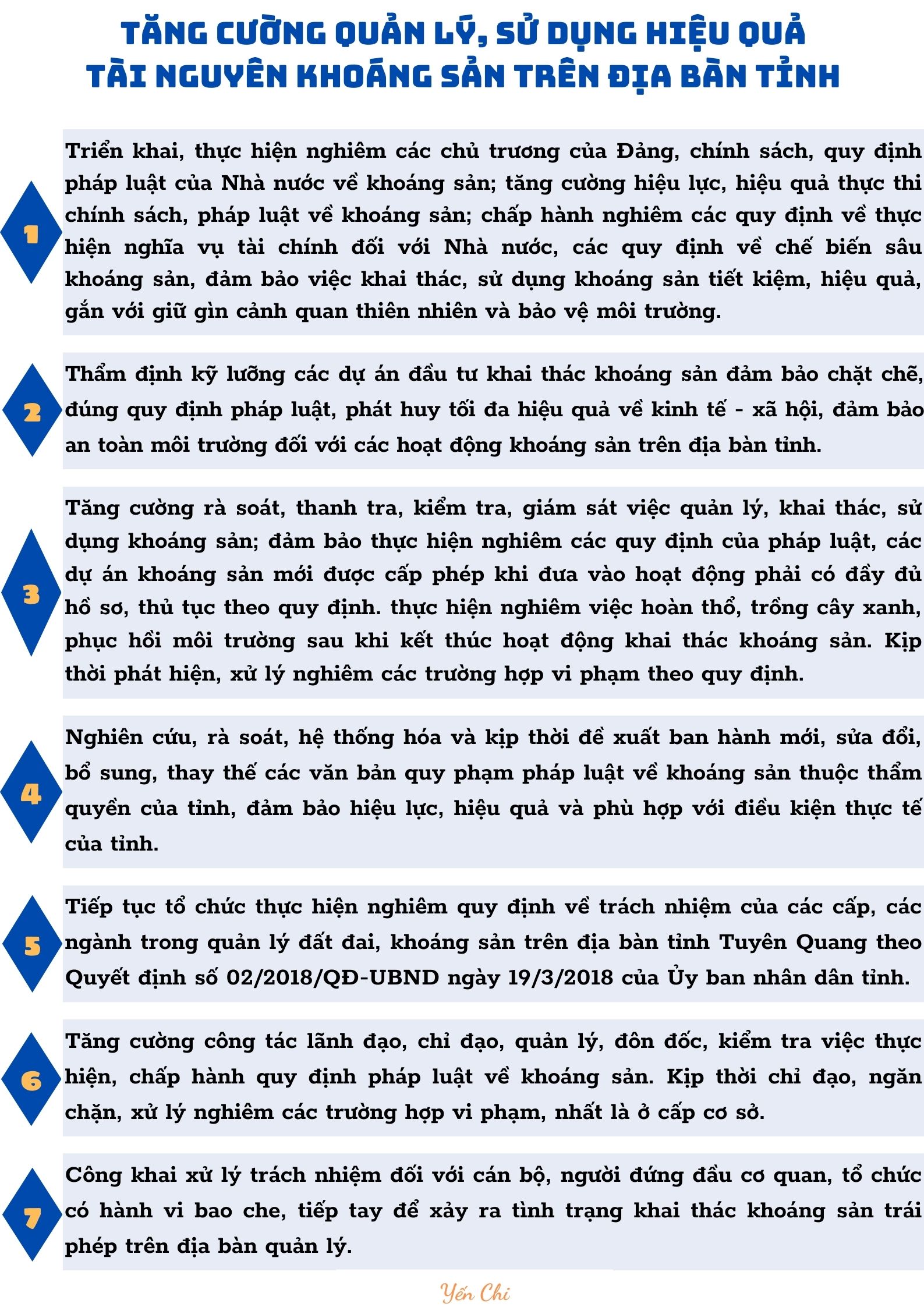 Ngày 03/4/2024 Ủy ban nhân dân tỉnh Tuyên Quang abn hành Văn bản số 1287/UBND-KT về tăng cường quản lý, sử dụng hiệu quả tài nguyên khoáng sản trên địa bàn tỉnh. Văn bản yêu cầu các cơ quan, đơn vị, Ủy ban nhân dân huyện, thành phố và các ngành liên quan thực hiện một số nội dung sau: