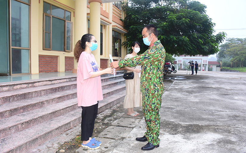 Thượng tá Trần Văn Thành, Trung đoàn Trưởng Trung đoàn 247, trao quyết định hoàn thành cách ly cho các công dân.