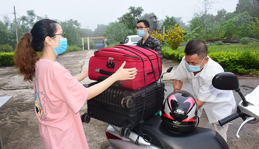 Công dân của tỉnh Tuyên Quang được người nhà đến đón sau khi hoàn thành 14 ngày cách ly tập trung.