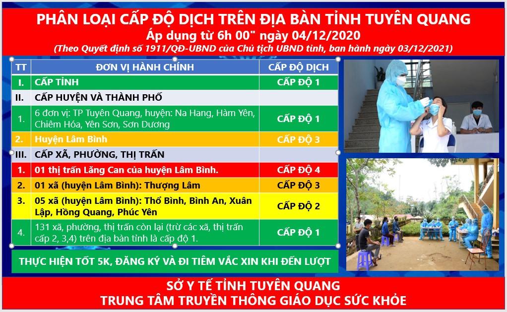 Ban Chỉ đạo phòng chống dịch COVID-19 Sở Y tế cung cấp thông tin dịch bệnh COVID-19 và tiêm chủng vắc xin COVID-19 trên địa bàn tỉnh Tuyên Quang (số liệu cập nhật đến 18h 00" ngày 05/12/2021).