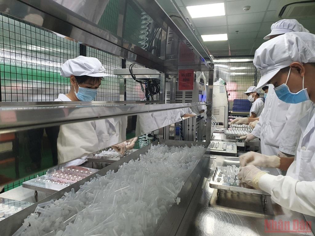 Một góc trong dây chuyền sản xuất kit test kháng nguyên virus SARS-CoV-2 của Công ty TNHH Medicon. Ảnh chụp ngày 19/12.