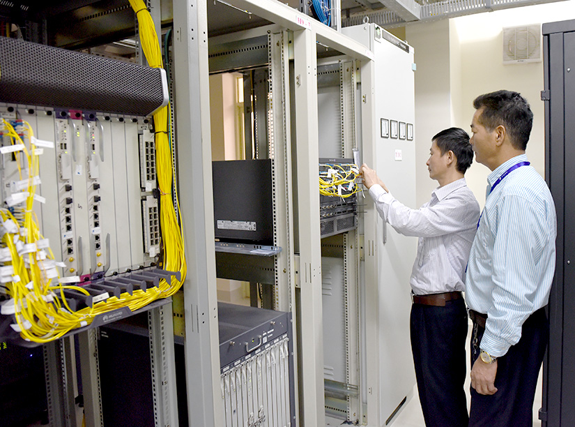 Nhân viên VNPT Tuyên Quang kiểm tra chất lượng đường truyền Internet. Ảnh: Quốc Việt