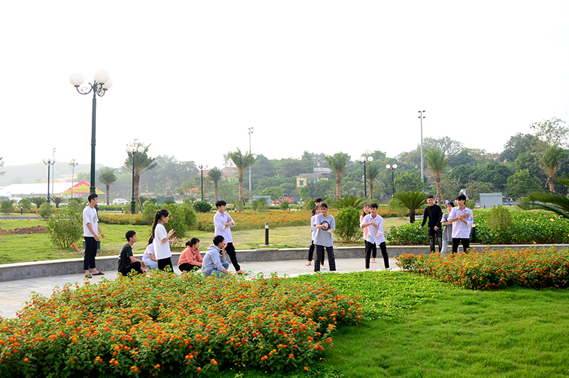 Quảng trường trung tâm hành chính thành phố là địa điểm tập luyện thể thao yêu thích của học sinh trường