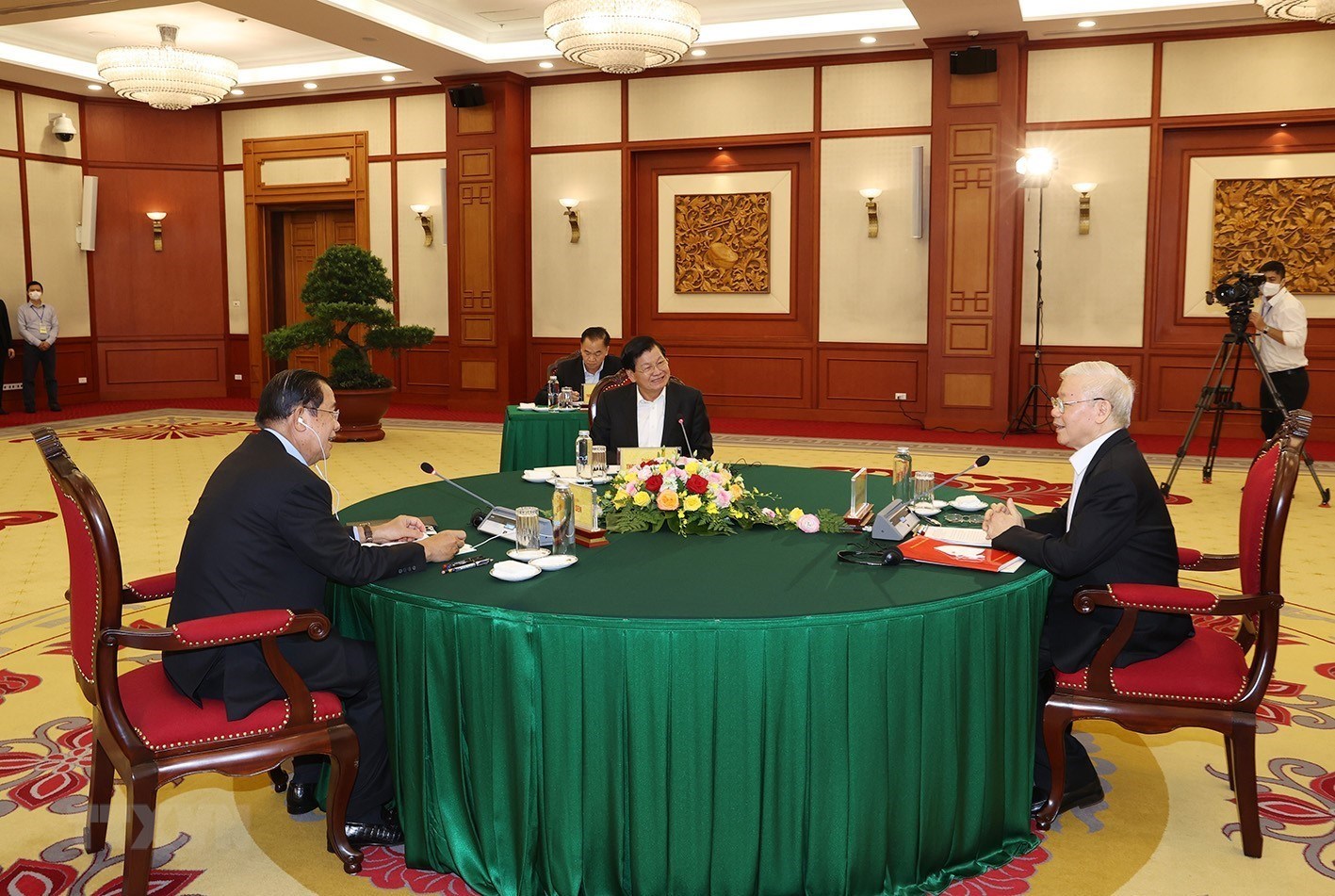 Tổng Bí thư Nguyễn Phú Trọng, Tổng Bí thư Đảng Nhân dân Cách mạng Lào Thongloun Sisoulith và Chủ tịch Đảng Nhân dân Campuchia Hun Sen tại cuộc gặp cấp cao Việt Nam - Lào - Campuchia_Ảnh: TTXVN