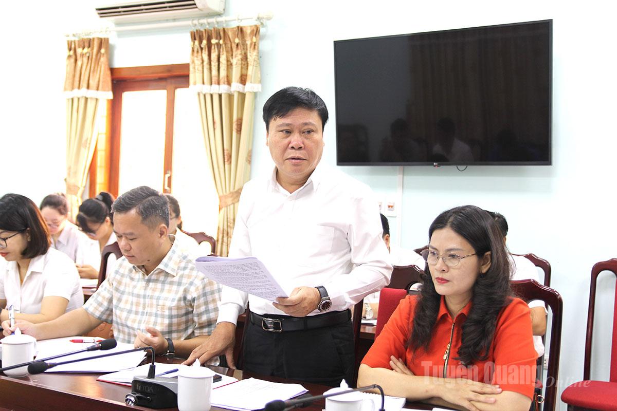 | Đồng chí Tổng Biên tập Báo và phát thanh, truyền hình Tuyên Quang phát biểu tại cuộc họp. |