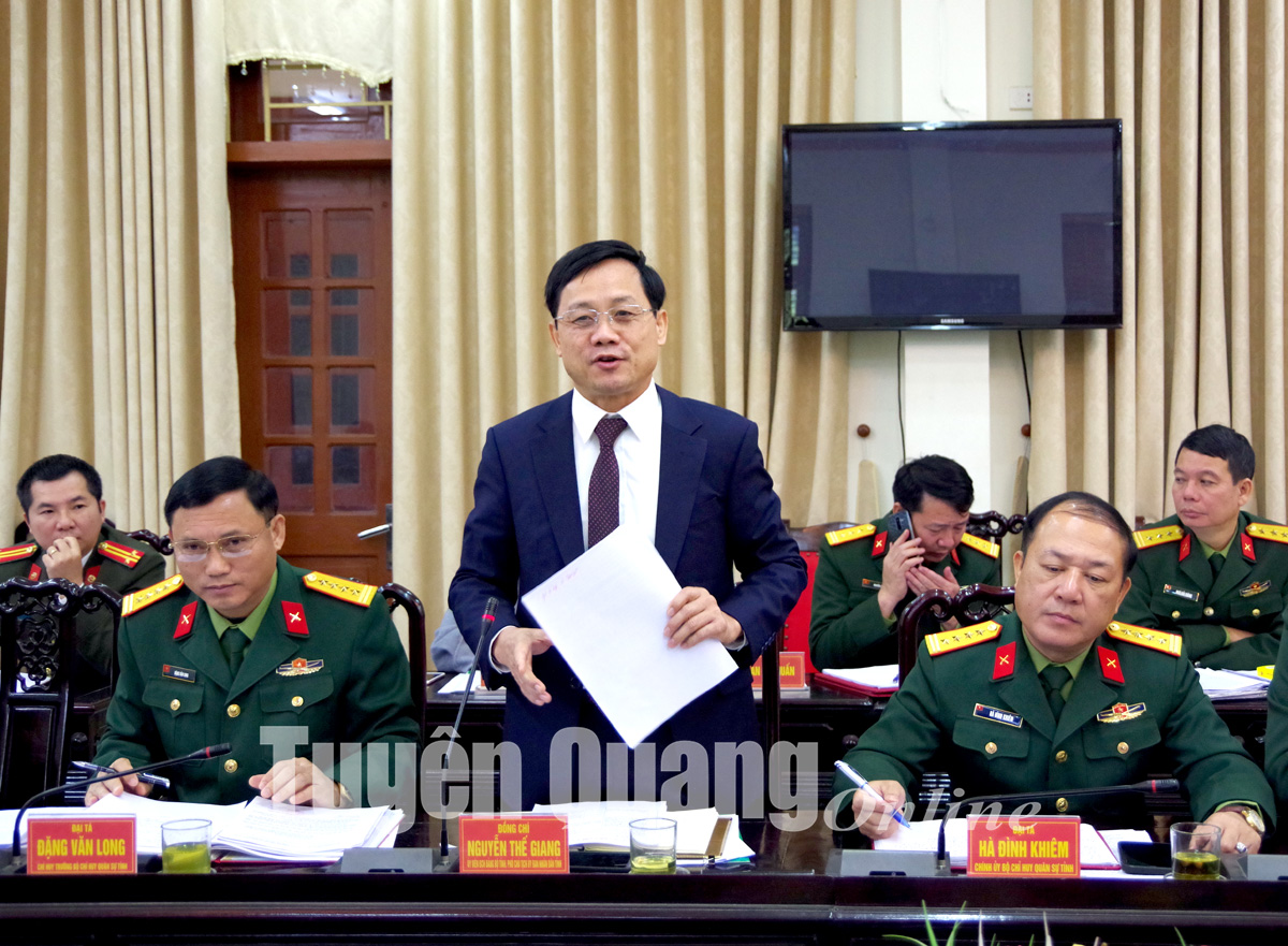 Trung tướng Nguyễn Anh Tuấn, Phó Giám đốc Học viện Quốc phòng; đồng chí Nguyễn Thế Giang, Uỷ viên BCH Đảng bộ tỉnh, Phó Chủ tịch UBND tỉnh đồng chủ trì hội nghị. Dự hội nghị có Đại tá Đặng Văn Long, Ủy viên Ban Thường vụ Tỉnh ủy, Chỉ huy trưởng Bộ CHQS tỉnh; lãnh đạo các sở, ban, ngành; thủ trưởng các cơ quan Bộ CHQS tỉnh.