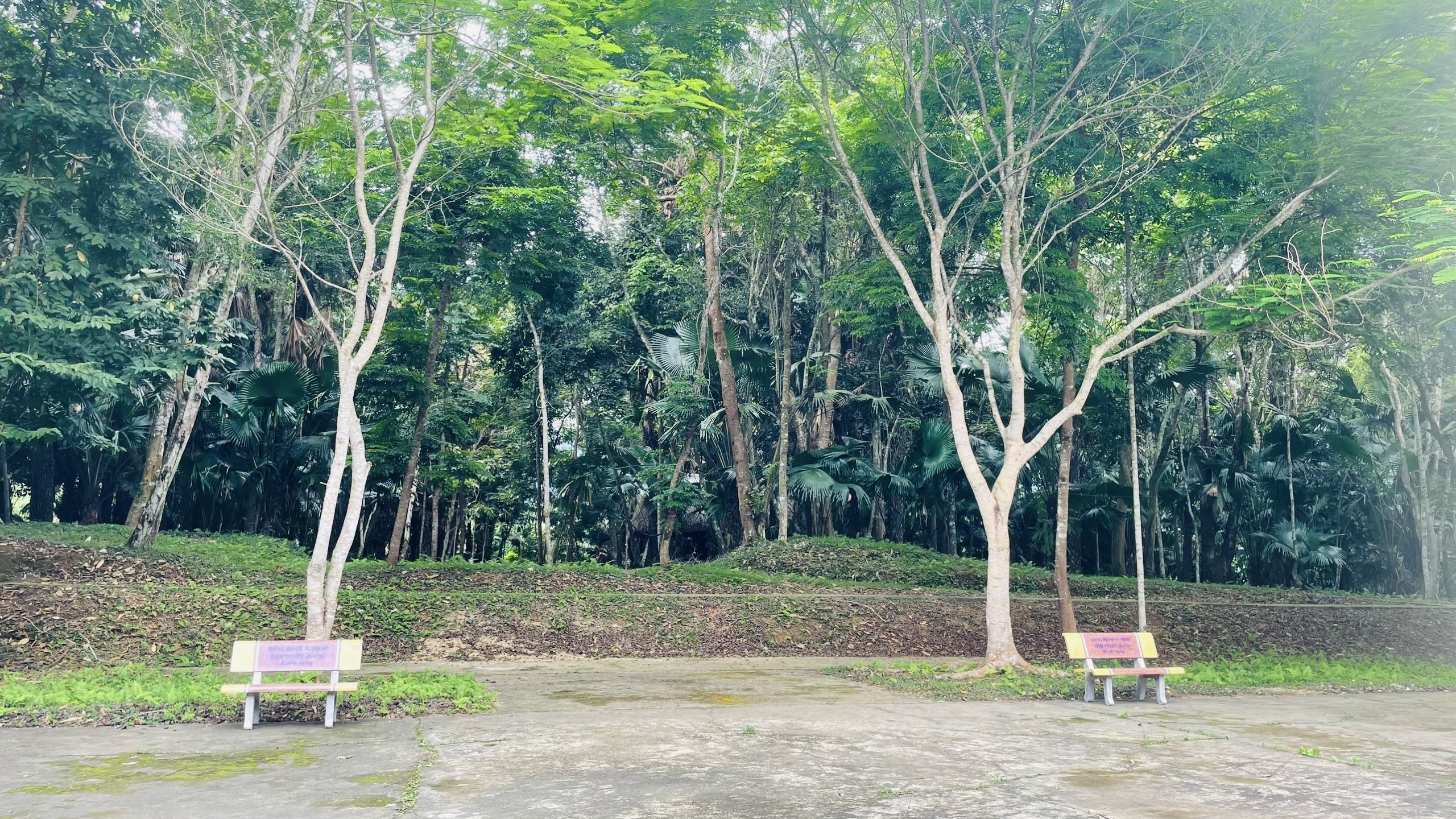 Ghế đá được đặt tại điểm di tích Hội trường nơi họp Đại hội (Ảnh: Đức Thành- Sở Tư pháp tỉnh Tuyên Quang)