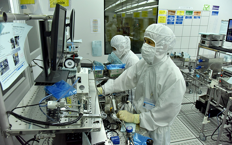 Công nhân làm việc tại Khu công nghiệp VSIP Bắc Ninh được trang bị đồ bảo hộ chống dịch Covid-19, bảo đảm hoạt động sản xuất. Ảnh: Thanh Trúc.