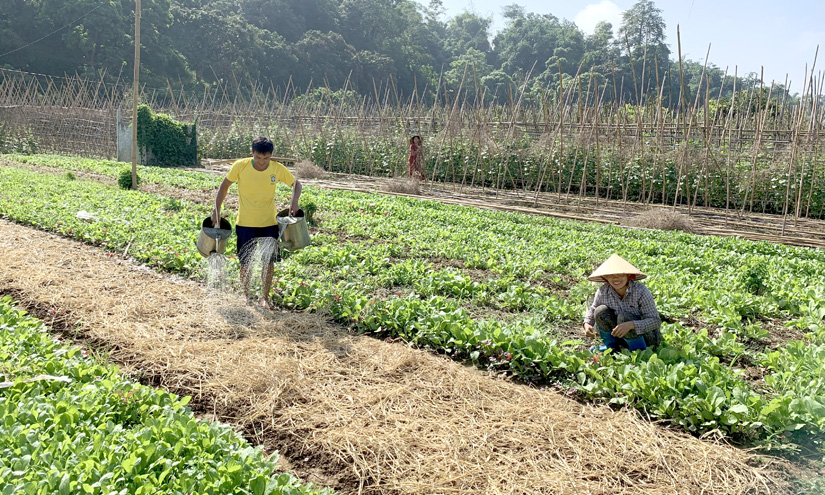 Người dân thôn Liên Nghĩa, xã Vinh Quang (Chiêm Hóa) rải vụ trong canh tác rau xanh điều tiết