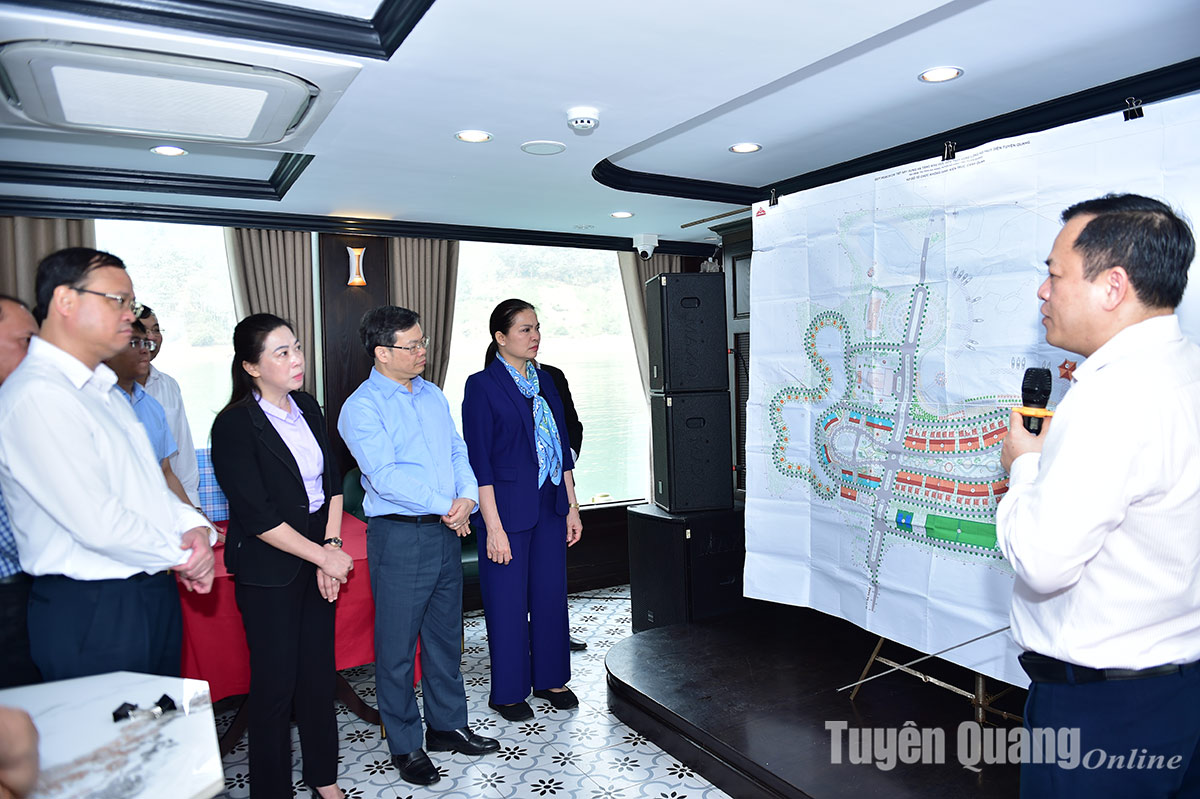 Các đồng chí lãnh đạo tỉnh nắm tình hình quy hoạch chi tiết khu vực bến thủy thị trấn Na Hang.​