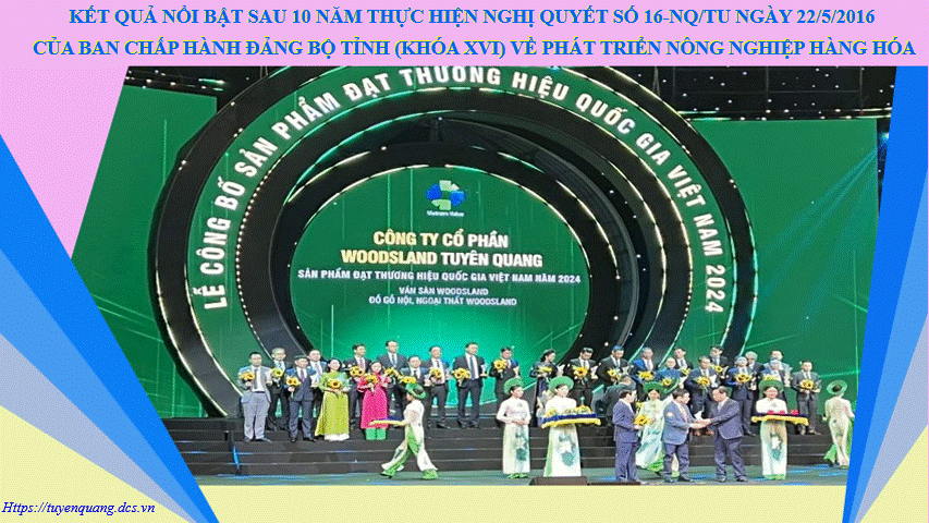 Sau gần 10 năm thực hiện Nghị quyết số 16-NQ/TU, sản xuất nông nghiệp của tỉnh đã có sự phát triển rõ nét hơn, chuyển dịch mạnh mẽ sang sản xuất hàng hóa, duy trì tăng trưởng khá, giá trị sản xuất nông lâm nghiệp thủy sản tăng bình quân 4,6%/năm, cao hơn bình quân chung cả nước (cả nước trên 3%); chất lượng sản phẩm nông nghiệp, vị thế và sức cạnh tranh trên thị trường ngày càng được nâng cao; các vùng sản xuất chuyên canh cây trồng, vật nuôi chủ lực tiếp tục phát triển mạnh, giá trị hàng hoá chủ lực chiếm trên 70% tổng giá trị sản xuất nông, lâm nghiệp thủy sản; lâm nghiệp phát triển hiệu quả, bền vững với trên 83.231 lượt ha rừng trồng được cấp chứng chỉ quản lý rừng bền vững (cao nhất cả nước); có 04 sản phẩm được công nhận đạt Thương hiệu quốc gia Việt Nam (sản phẩm Giấy và bột giấy của Công ty Cổ phần giấy An Hòa; sản phẩm ván công nghiệp và sản phẩm đồ gỗ từ gỗ rừng trồng của Công ty Cổ phần Woodsland Tuyên Quang); thu nhập và đời sống của người dân tiếp tục được nâng lên (năm 2024, thu nhập bình quân người dân nông thôn theo giá hiện hành đạt 3,9 triệu đồng/người/tháng, tăng 2,1 lần so năm 2015) góp phần quan trọng đẩy nhanh tiến trình và chất lượng xây dựng nông thôn mới.
