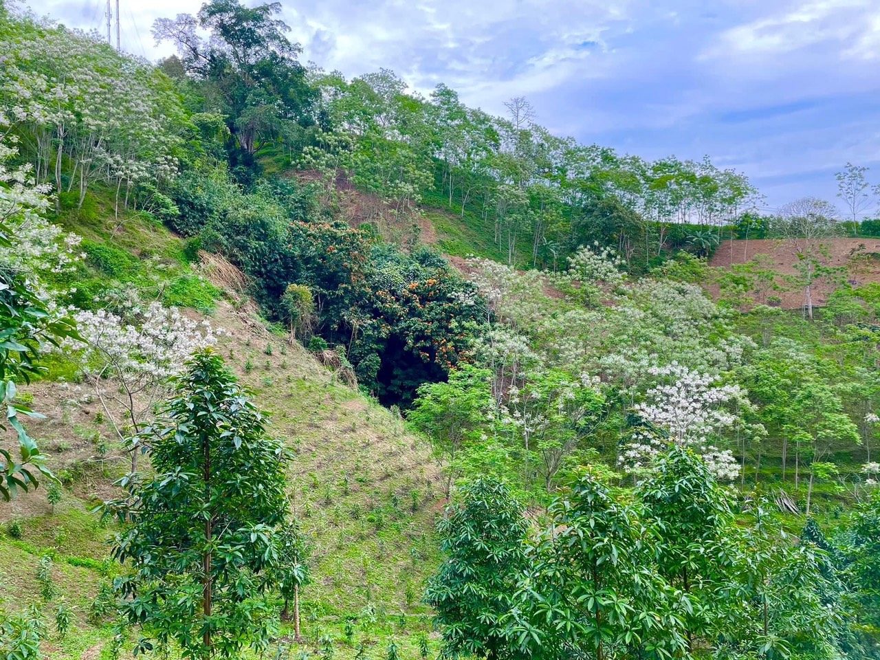 Những cánh rừng mới trồng được điểm tô bởi hoa xoan, hoa vàng anh