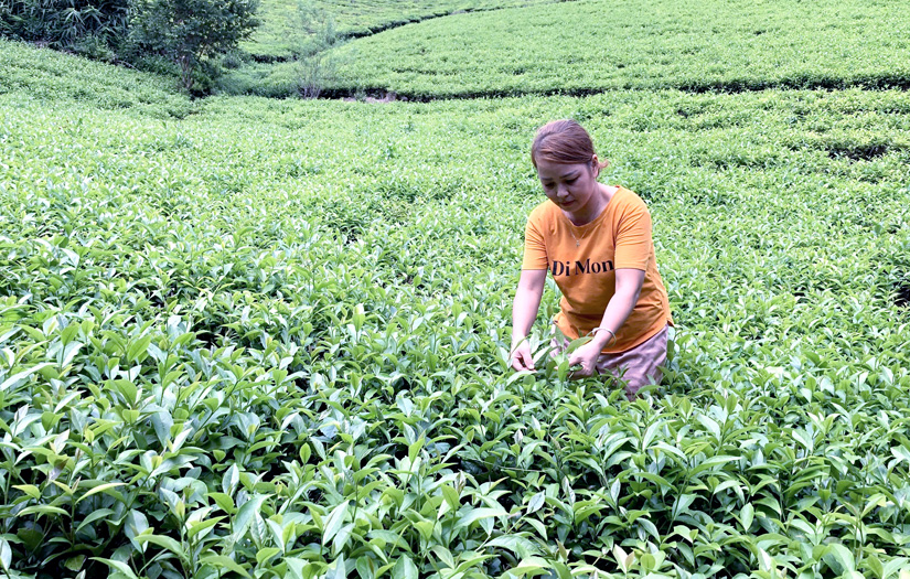 Người dân xã Nhữ Khê (Yên Sơn) thu hái chè búp tươi.