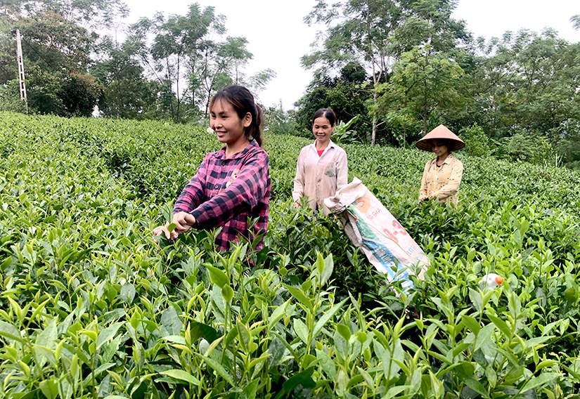 Người dân thôn Hạ Đồng, xã Nhân Lý thu hái chè.