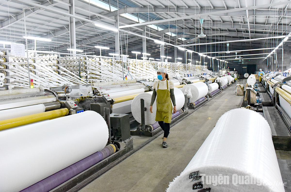 Sản xuất vải bạt PP của Công ty TNHH HITARP Việt Nam, cụm công nghiệp Phúc Ứng (Sơn Dương).