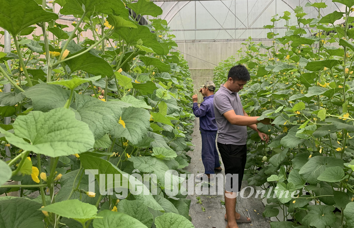 Công ty Green Farm, xã Kháng Nhật (Sơn Dương) sử dụng nhà lưới trồng dưa Nhật đem lại thu nhập cao.