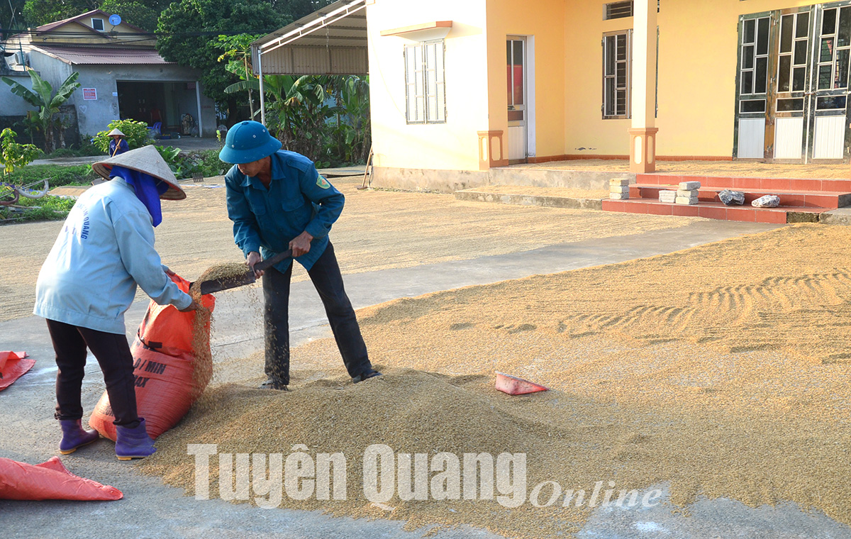 Bà con nông dân xóm 2, xã Kim Phú (Tp Tuyên Quang) phơi thóc cất trữ.