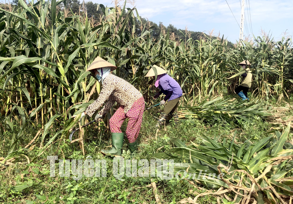 Người dân xã Thổ Bình (Lâm Bình) thu hoạch ngô đông giải phóng đất chuẩn bị sản xuất vụ xuân.