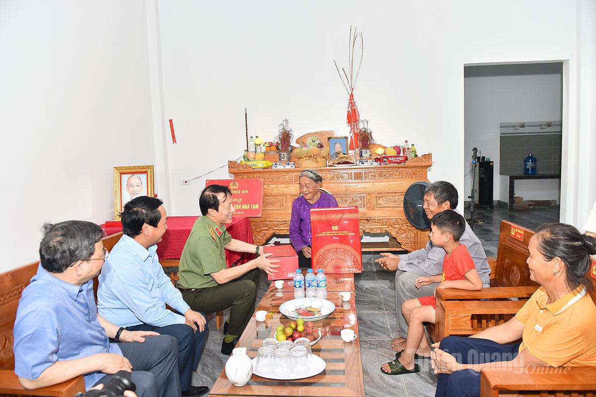 Nhân dịp này, Bộ trưởng Bộ Công an Lương Tam Quang đã thăm gia đình Thiếu tá Nguyễn Quang Tường - thương binh Công an nhân dân tại thôn Lê, xã Minh Thanh; dự Lễ khánh thành công trình xóa nhà tạm cho gia đình ông Nguyễn Văn Luận tại thôn Toa, xã Minh Thanh.